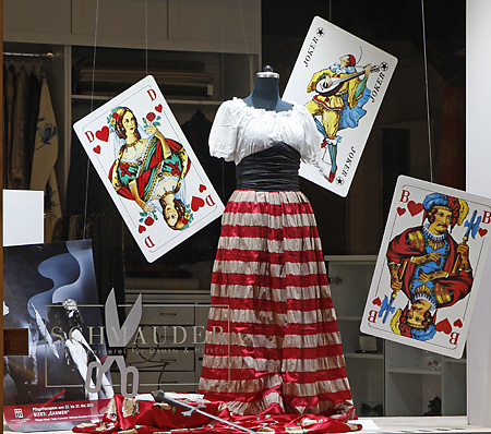 Die Pfingstfestspiele sind jedes Jahr ein kulturelles Highlight in Baden-Baden. Damit das nicht nur auf der Bühne deutlich wird, ruft das Festspielhaus dazu auf, die Schaufenster der Geschäfte in Szene zu setzen. 2010 stand George Bizets Oper Carmen auf dem Spielplan. Die Maßschneiderei Schmauder kombinierte elegante Kleider für Carmen und ihren Don José mit Spielkarten und Stierköpfen. Die Jury des Festspielhauses lobte den Einfallsreichtum und verlieh der Maßschneiderei einen der drei Hauptpreise. Bildergalerie ansehen